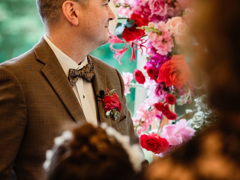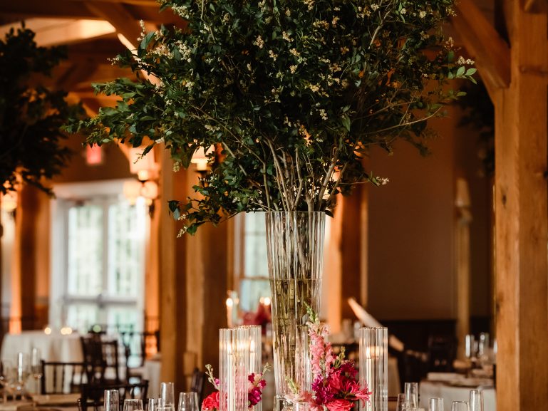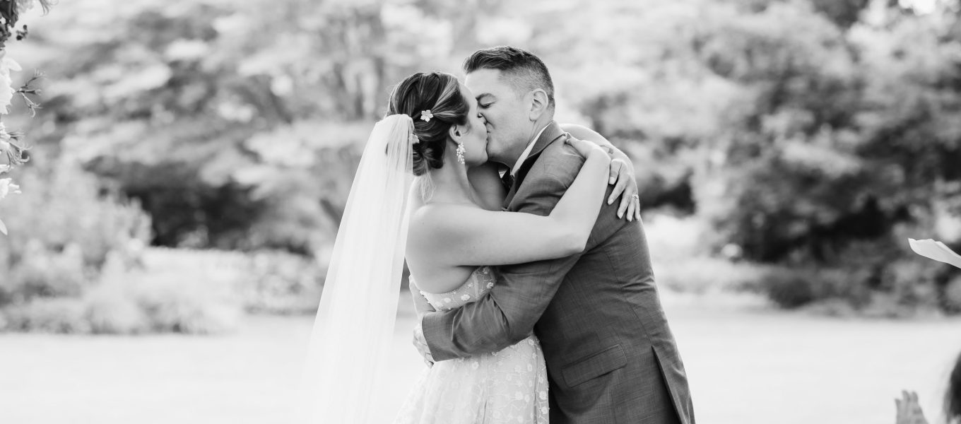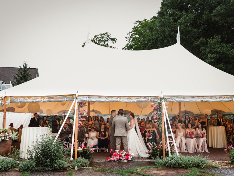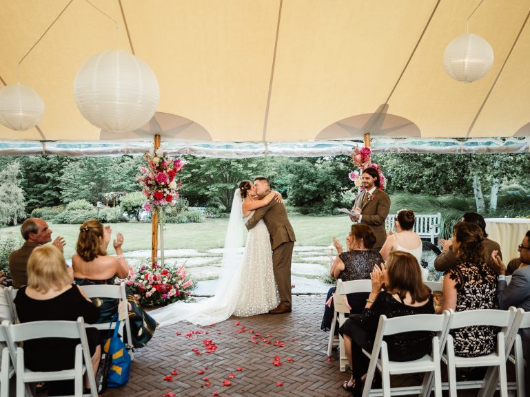 Lauren and Josh’s wedding was a stunning summer celebration set amidst vibrant greenery and blooming gardens. Their ceremony began under a floral-adorned arbor, surrounded by loved ones and nature’s serenity. Guests were then welcomed into a grand tented reception filled with elegant details, from soft candlelight to cascading floral arrangements in shades of pink and red. Lauren and Josh’s love radiated in every moment, creating an unforgettable experience for all in attendance.