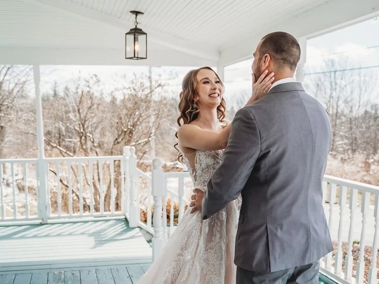 Jess and her husband celebrated their dream winter wedding at Harrington Farm in March, right after a snowstorm swept through Princeton. Their big day was made unforgettable by the venue’s exceptional staff, unique touches like a bartender stepping in to play the piano, and the perfectly placed decorations that brought their vision to life.