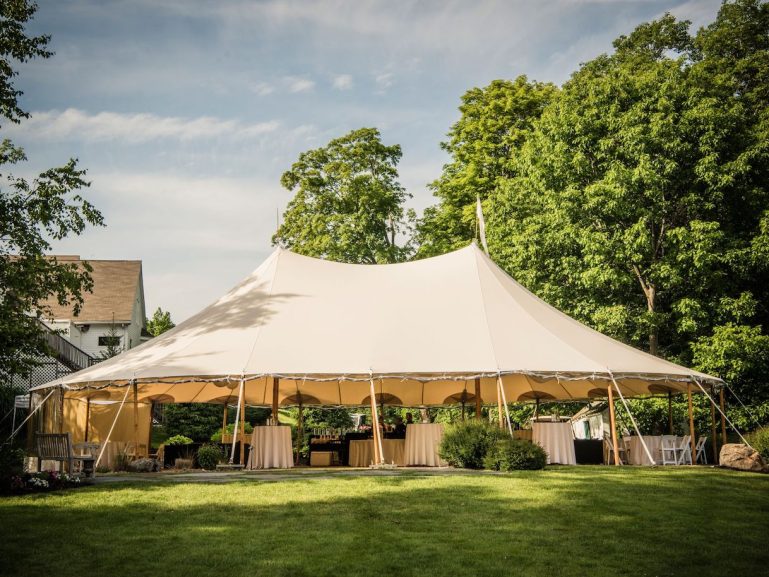 Experience quintessential New England elegance with cocktails beneath our signature sailcloth Sperry Tent. Whether sipping your first drink as newlyweds or raising a toast with colleagues, this inviting space sets the tone for unforgettable spring, summer, and fall events. The tent offers a versatile selection of tables, seating, and décor to create a festive atmosphere tailored to your vision. The Sperry Tent is easily accessible from the Barn, Farmhouse, and Ceremony Patio.