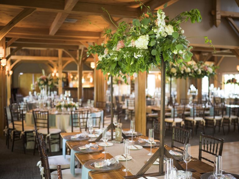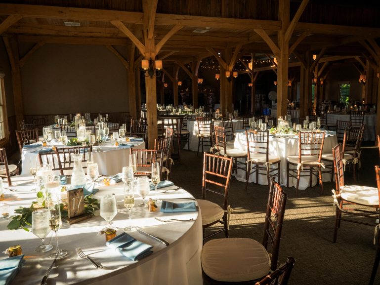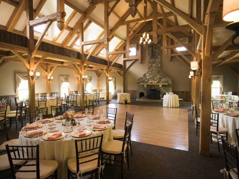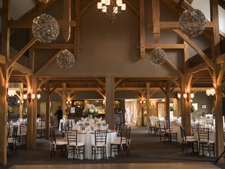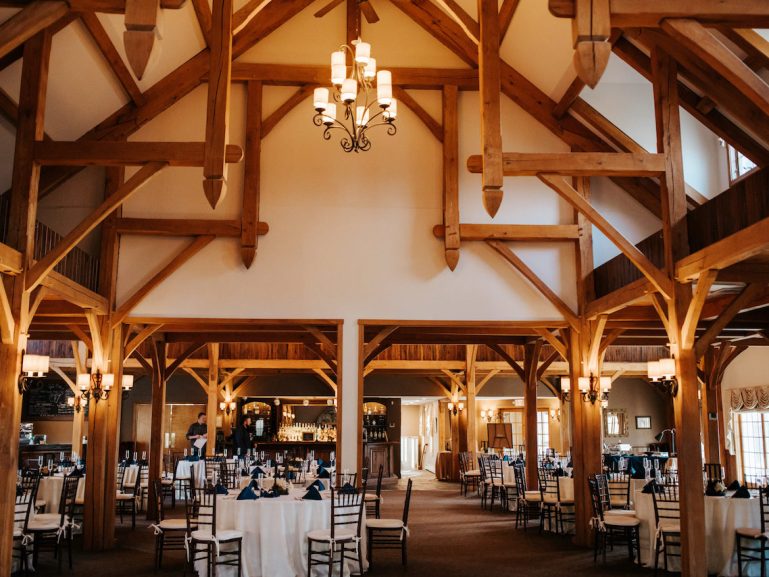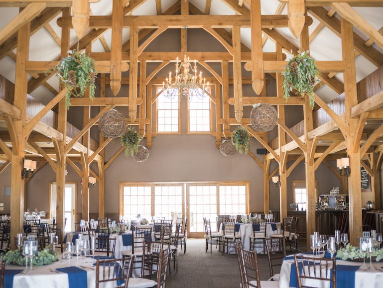 Built in 1997, the Barn at Harrington Farm showcases masterful mortise and tenon oak craftsmanship, providing a charming and timeless setting for wedding receptions and indoor ceremonies. Blending sophisticated features with a warm rustic touch, the ballroom features 30-foot vaulted ceilings, hammer beam trusses, a wooden dance floor, and a Steinway grand piano.